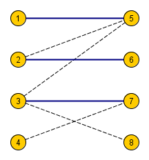 В другую сложнее — нужно воспользоваться индукцией. Будем доказывать, что если паросочетание не полное, то можно в таком графе найти увеличивающую цепь, и с её помощью увеличить паросочетание на единицу.