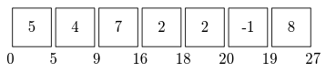 Иногда префиксные суммы определяют включая правый конец и без нулевого элемента, то есть как $s_k = a_0 + a_1 + \ldots + a_k$, но по той же причине, почему отрезки почти всегда менее удобны, чем полуинтервалы, мы всегда будем работать с «полуинтрвальными» префиксными суммами из определения.