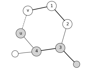 Разрезом связного графа будем называть подмножество рёбер и вершин, образующих подграф, в котором есть ровно две компоненты связности. Ребро пересекает данный разрез, если при его добавлении граф снова становится связным.