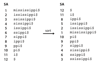 Суффиксные структуры часто (но не всегда) взаимозаменяемые, и более того, конвертируются друг в друга за линейное время. Суффиксный массив — самый простой из них, поэтому мы с него и начнём.