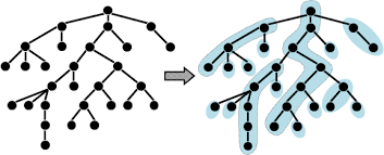 Таким образом, дерево распалось на тяжелые и лёгкие рёбра. Это разбиение и называют heavy-light декомпозицией.